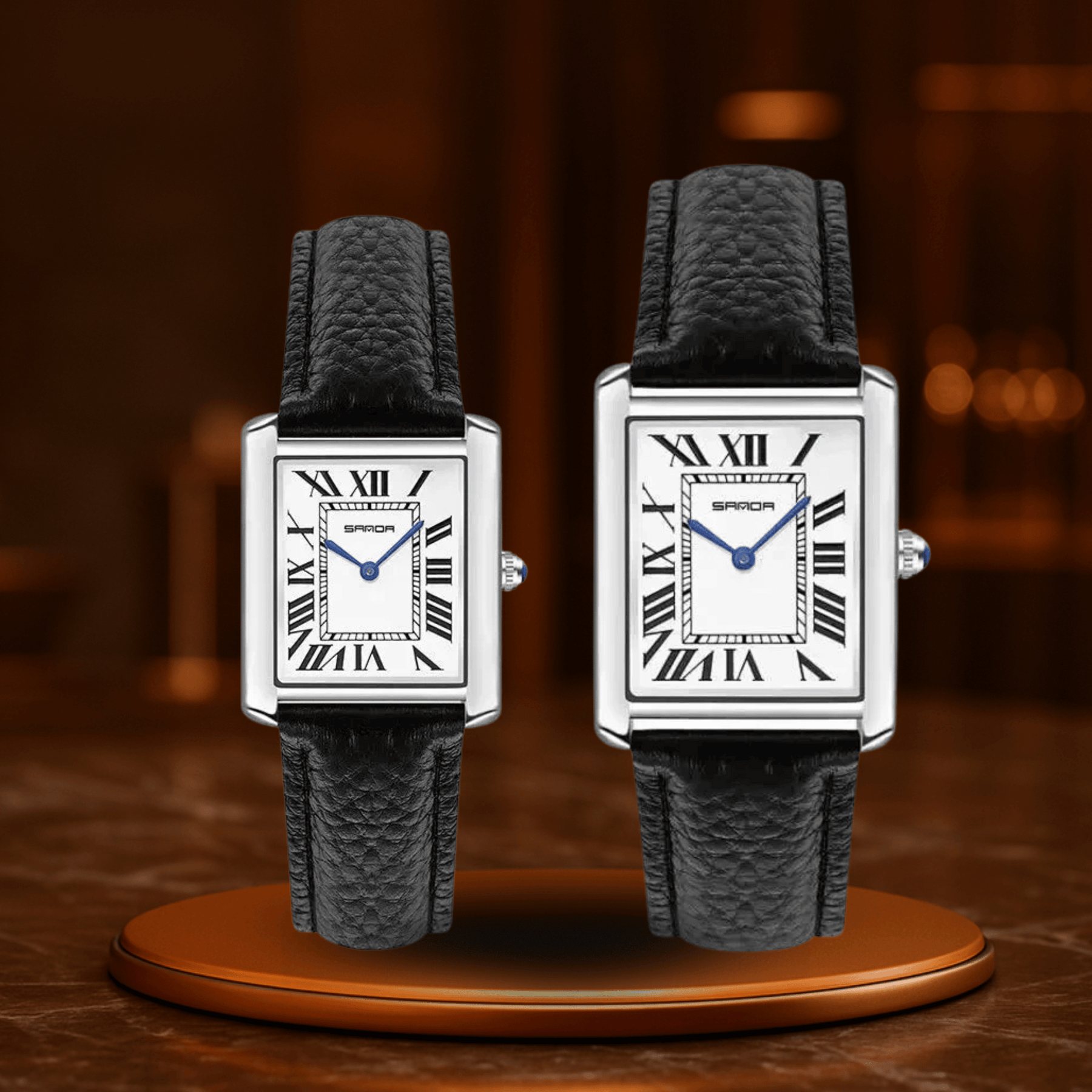 Both feature a durable leather strap, stylish comfort, and minimalist elegance – perfectly matched, just like two people who have found their own rhythm.