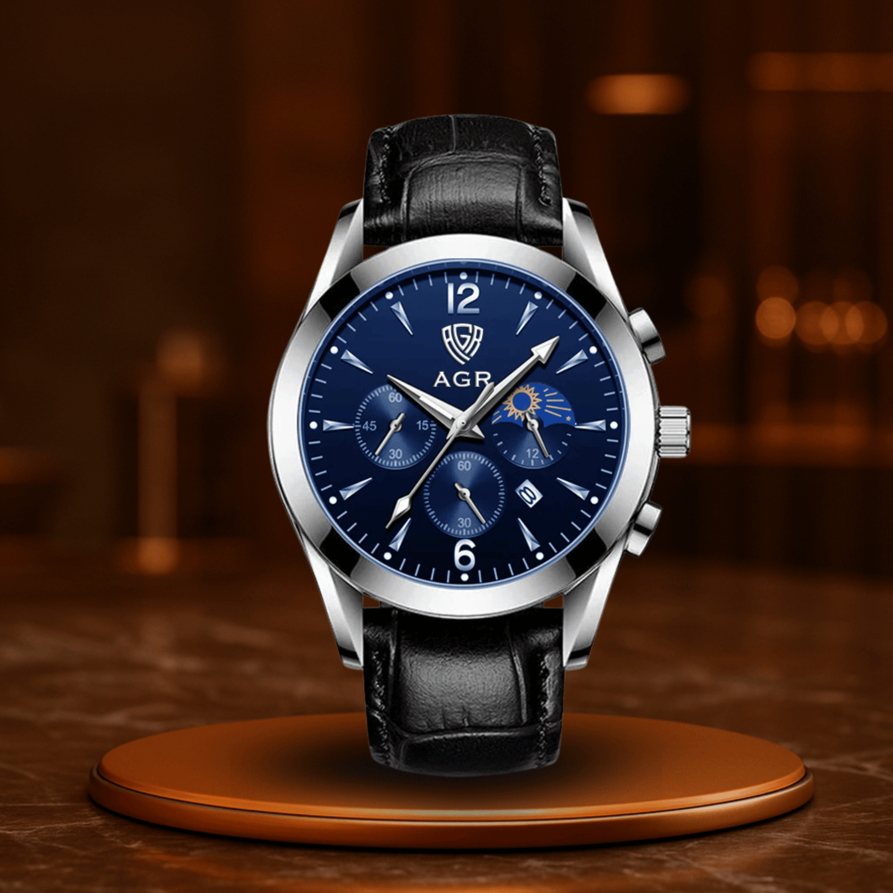 The sleek leather strap, combined with the sporty-masculine stainless steel case, makes this watch an ideal companion for any moment – whether it's a formal dinner, a spontaneous weekend trip, or a quiet glance at the wrist that says: “I am ready.”