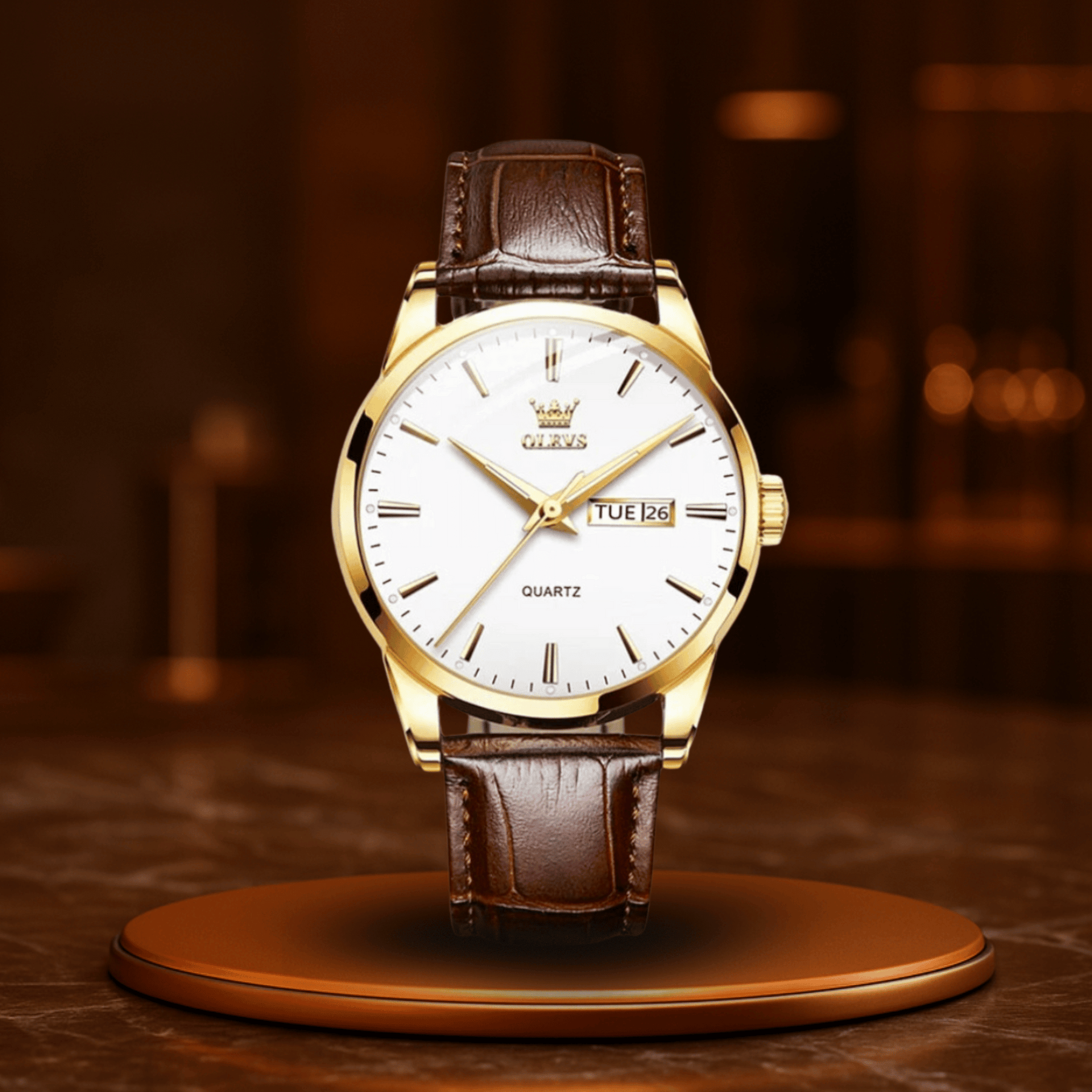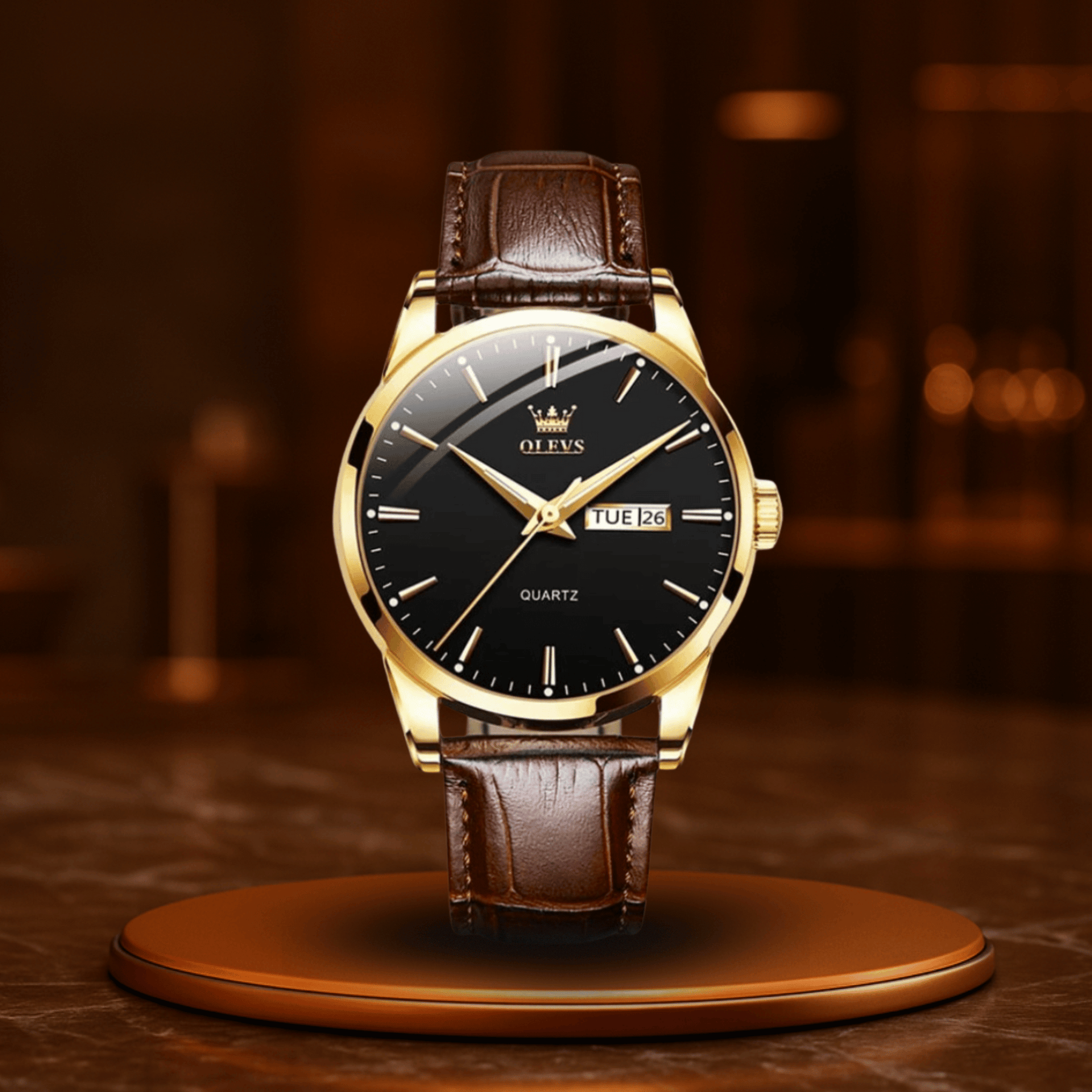 PrestigeCraft is more than a watch – it is a symbol of quality and self-confidence. With a premium leather strap, a precise quartz movement and illuminated hands, this watch ensures you are always on time and stylish, no matter the occasion. The water-repellent design and date display make this watch a practical accessory that also adds a touch of luxury.