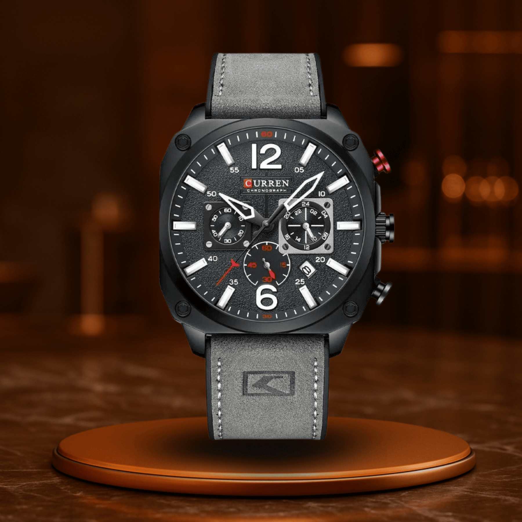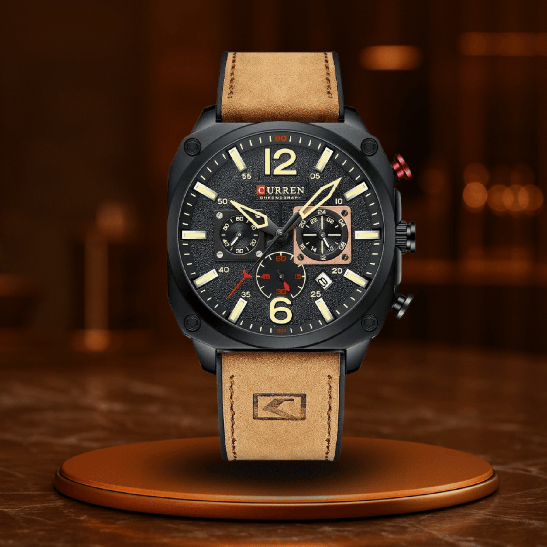 The Vanguard 44 is more than just a watch – it's a tool for excellence. Featuring a precision quartz movement and a sleek yet striking design, it sets the standard. The elegant leather strap offers maximum comfort, while the waterproof construction and shock resistance ensure robustness for everyday life.