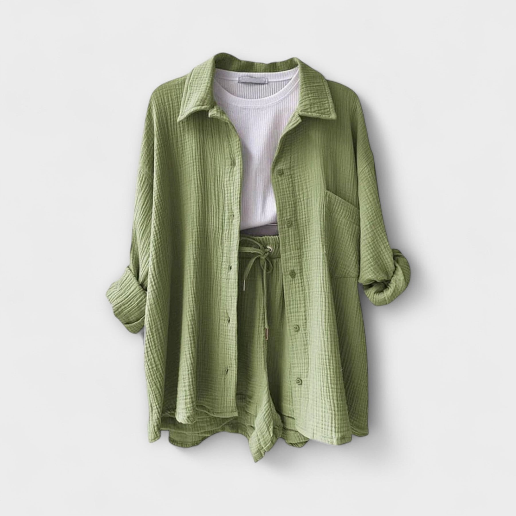Victoria | Comfortable 2-Piece Set is the perfect combination of comfort and style for your wardrobe. Ideal for warm weather, this set is made from breathable fabrics and features a versatile, elegant design. Whether you're relaxing by the pool or going on a casual outing, this set offers a flattering fit that keeps you cool and confident all day long.